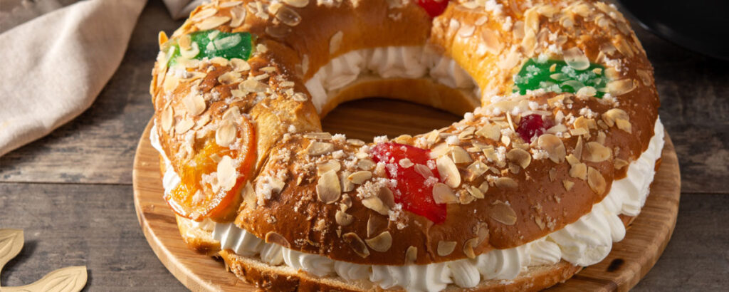 - España (Roscón de Reyes): Muy similar a la nuestra, decorada con fruta escarchada y almendras; suele estar rellena de nata o chocolate. Si encuentras el haba, pagas el postre, pero recibes buena suerte.