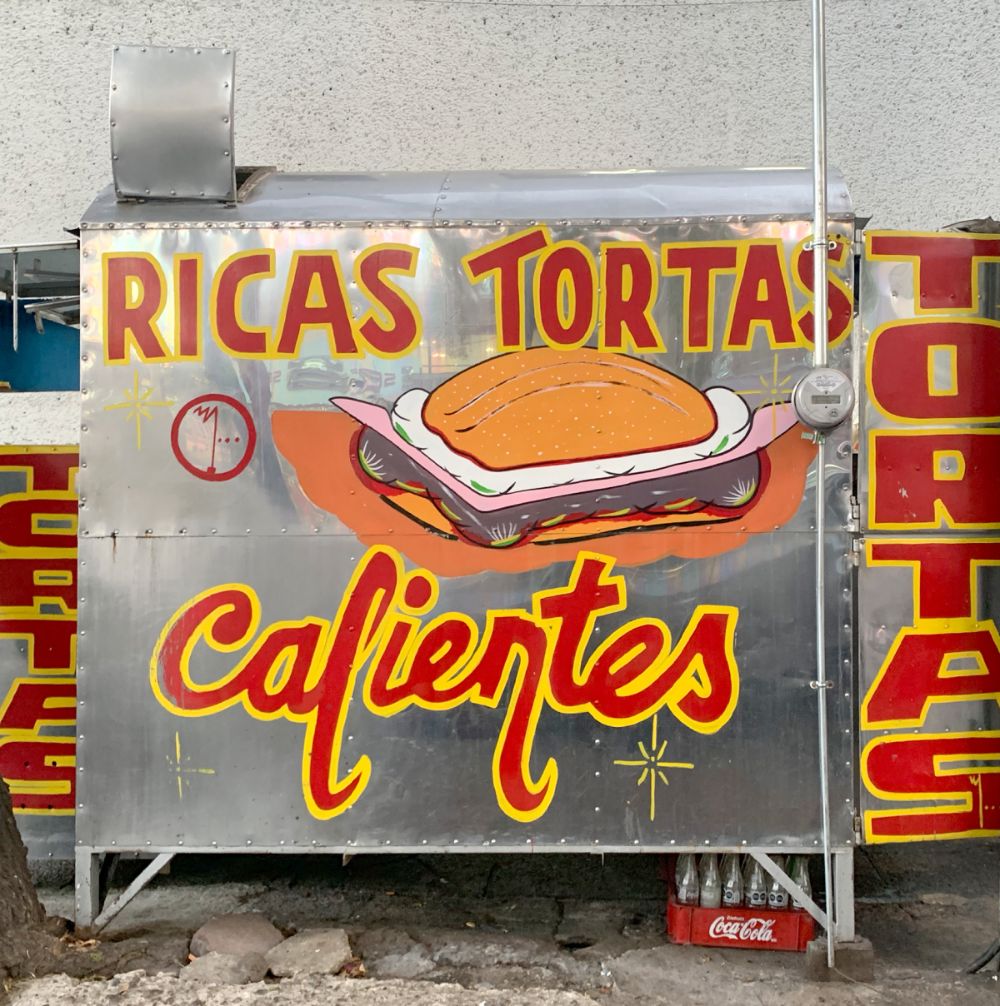 Los rótulos se reconocen por sus letras grandes, colores contrastantes y composiciones directas. No hay miedo al rojo, al amarillo o al verde fosforescente. A veces incluyen personajes pintados: pollos sonrientes, tortas abiertas a la mitad, refrescos sudando, o caricaturas improvisadas que explican el menú sin necesidad de palabras. Todo es claro, exagerado y pensado para verse desde lejos.